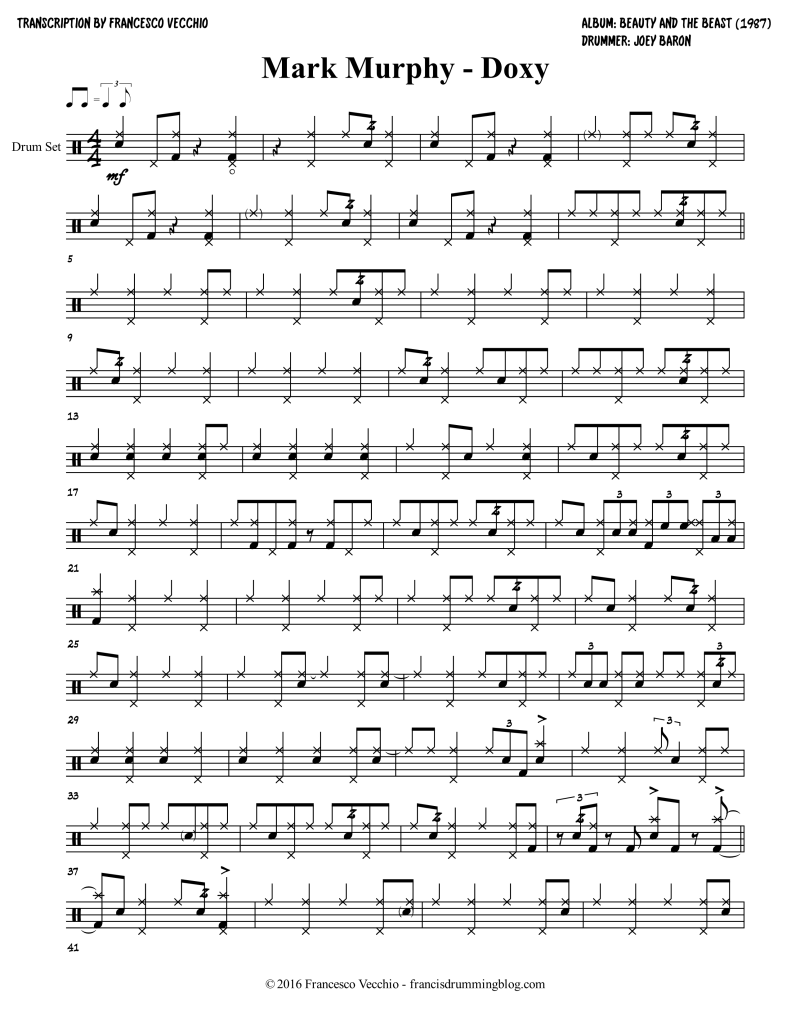 In the previous articles, I posted some of Joey Baron’s transcriptions from the album Beauty And The Beast (1986) by Mark Murphy. Here’s a collection of 3 Joey Baron complete drum transcriptions, including Doxy, Effendi (Head), and Along Came Betty. Keep on drumming!