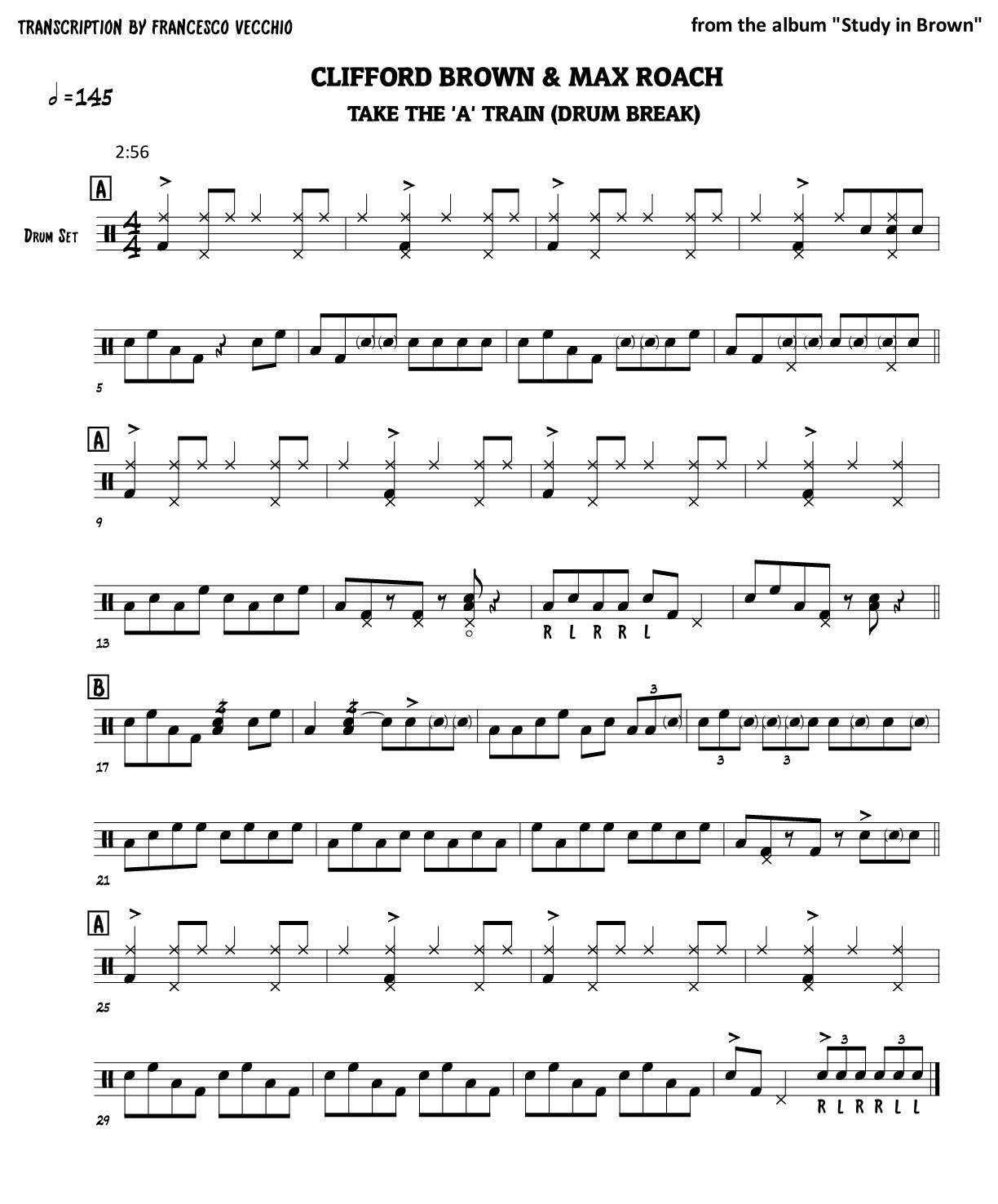 Max Roach is one of my bigger sources of inspiration, a legendary player and a creative soloist; one of the first to introduce the concept of melodic drumming (listen to “Conversation” from the 1958 album Deeds, Not Words). Here’s a free collection of 3 Max Roach drum transcriptions of some of his most famous performances. The transcriptions included are: