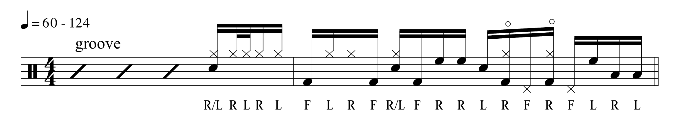 The drum fill for this episode incorporates a 16th-note linear idea between the hi-hat, bass drum, snare, and toms. Unlike most drum fills, this one is conceived over two bars, starting on the fourth beat of the first bar and developing on the second bar. The key to mastering this idea is memorizing the sticking starting slowly, and once comfortable increasing the BPM. Analyzing the drum fill, we have a groove-oriented construction with a snare backbeat and a defined bass drum pattern. A variation occurs in the last two beats, with an open/closed hi-hat pattern and an ending on the toms.